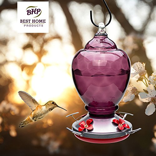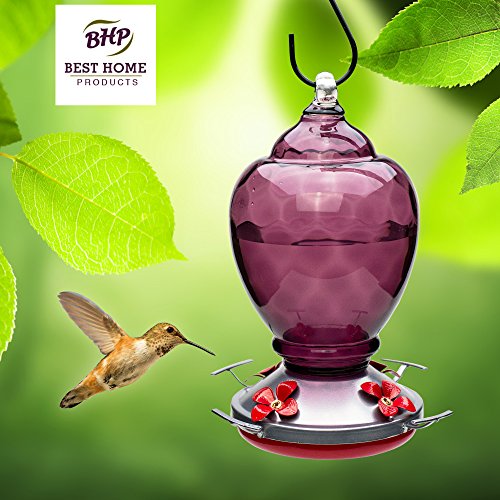 - Title : GLASS HUMMINGBIRD FEEDERS with Perch --- Hand-Blown Glass Feeder | Almond Breeze | Purple, Premium, Pretty | Holds 28 ounces of Nectar | Nature & Bird Lovers | Rave Reviews | 100% MONEY BACK GUARANTEE (by Best Home Products)