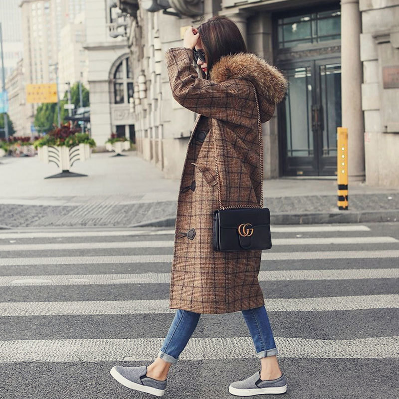 レトロガーリーな雰囲気がかわいいチェック柄が特徴のダッフルコート。
