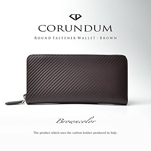 -. Title : 【CORUNDUM】 コランダム イタリア製 カーボンレザー スマートラウンド長財布 【ブラウン】