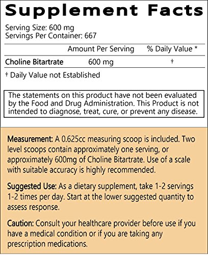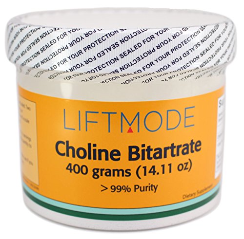 -. Binding : Health and Beauty -. Brand : LiftMode -. Color : Natural -. EAN : 0608729279174 -. Feature : MEMORY BOOSTER - Clinical studies show that Choline supplements support a healthy memory and learning abilities / SUPPORTS FOCUS & CONCENTRATION - Choline is an essential nutrient for cognitive performance and supports healthy mental focus and attention / SUPPORTS A HEATHY CIRCULATORY SYSTEM - Choline Bitartrate supplements have anti-inflammatory properties and help to regulate cellular communication / 100% VEGAN & VEGETARIAN FRIENDLY - Choline Bitartrate is vegan friendly and contains no animal products whatsoever / NO ADDITIVES - This product is free from additives, fillers, preservatives, lactose, gluten and GMOs. It is tested by independent 3rd party laboratories in the US and ships with a Certificate of Analysis to ensure the highest quality -. IsAdultProduct : 0 -. Label : LiftMode -. Manufacturer : LiftMode -. PackageQuantity : 1600 -. ProductGroup : Health and Beauty -. ProductTypeName : HEALTH_PERSONAL_CARE -. Publisher : LiftMode -. Size : 400 Grams -. Studio : LiftMode -. Title : LiftMode Choline Bitartrate Powder - 400 Grams (1600 Servings at 250 mg | 800 Servings at 500 mg) | #1 Value for Money Bulk Supplement | CDP Choline Chloride 100% Natural Vegetarian Vegan -. UPC : 608729279174