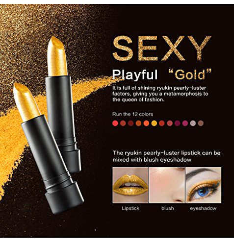 Product: Ryukin pearly-luster lipstick 12 colors for your option. L*W*H:10.5x6.5x3cm Net content: 3.8g.