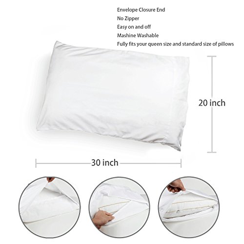 - Envelope closure end, no zippered. 2 Pack Pillowcases (20"x30") with deep pocket fit your queen/standard size pillows perfectly. Especially resistant to DUST MITES and ALLERGY CONTROL. No Shrinkage, Wrinkle Issues
