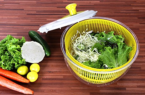One handed operation ensures that you dry your salad with ease and minimal effort