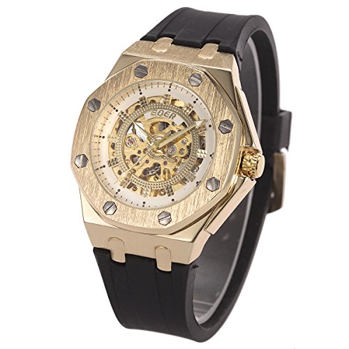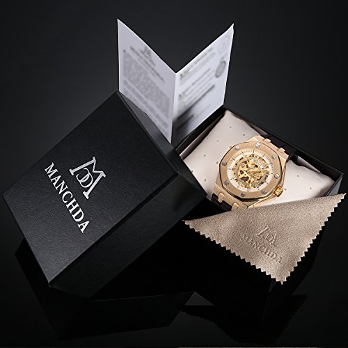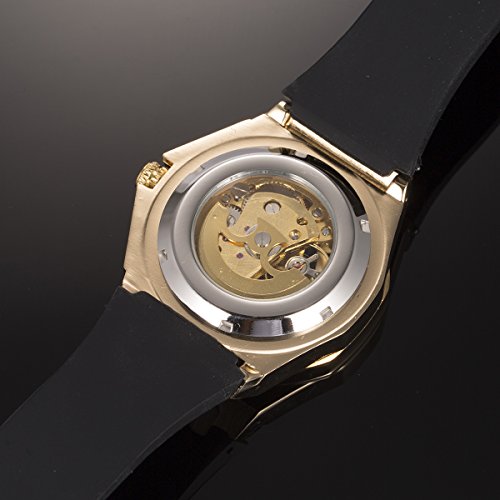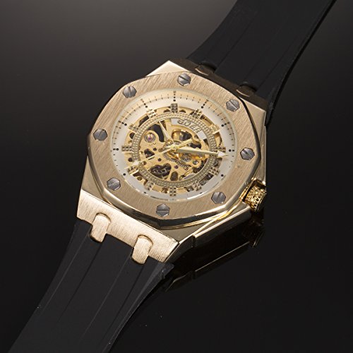 -. Title : ManChDa 自動機械式スケルトン メンズ腕時計 ゴムストラップ-ゴールド