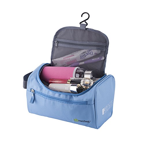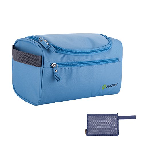 Hanzeek Hanging Toiletry Kit Clear Travel Size toiletries Bag Cosmetic Carry Case Toiletry with Travel Zip Pouch Mesh Bag Organizer Bag for Men & Women (Blue)
