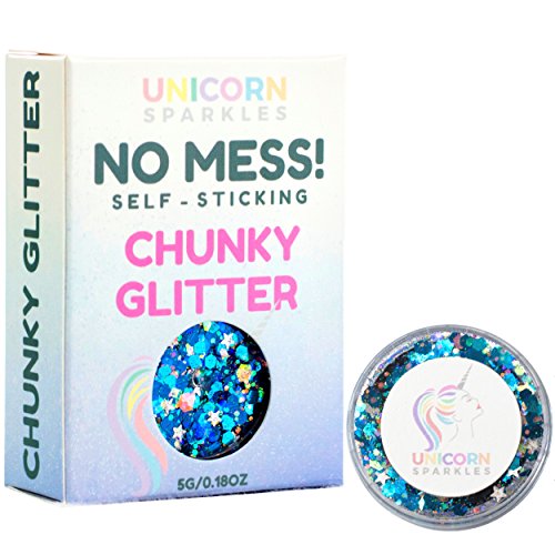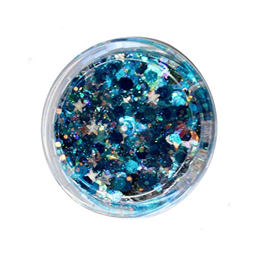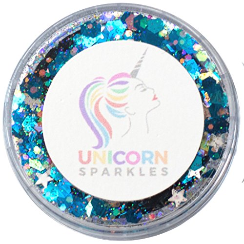 Bioluminescent Mermaid Blue Chunky Glitter | Self-Sticking, Aloe Vera Based, No Glitter Primer Needed | Cosmetic Glitter for Face & Body | by Unicorn Sparkles | Festival, Party & Rave Makeup