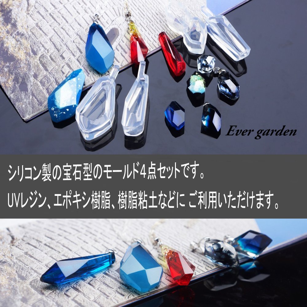 シリコン製の宝石型(鉱石モールド)のモールド4点セットです。UVレジン、エポキシ樹脂、樹脂粘土などに ご利用いただけるシリコンモールドです。