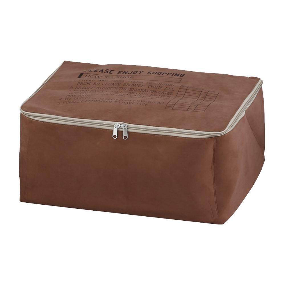 フェイクスウェード風生地で作られた触りごこちがソフトなボックスです。ショッピングシートをイメージしたプリントには買い物のメソッド(方法)が書かれていてユニークなデザインとなっています。 |