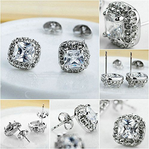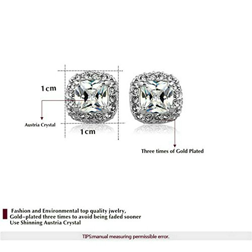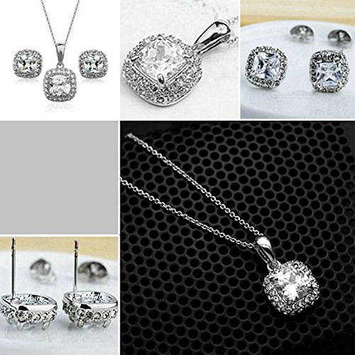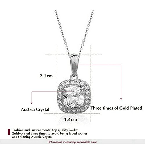 - Feature : Beautifully crafted Cubic Zirconia shining with grace and beauty. The set is 18k white gold plated, nickel free and tarnish free. / It's a perfect accessory to your outfit or as an appropriate gift used in wedding and engagement party or other occasions. / The chain is about 15.7'' long. The necklace pendant size is about 0.9''*0.6''. The earring size is 0.4''*0.4''. / Shipped out in an exquisite jewelry gift box. Delivery time 7-15 days. / One year warranty to ensure you a perfect shopping experience.