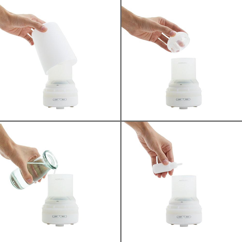 1, press the mist button, the mist comes out, put a few drops of aroma oil spread a soft and fragrant fragrance in the room