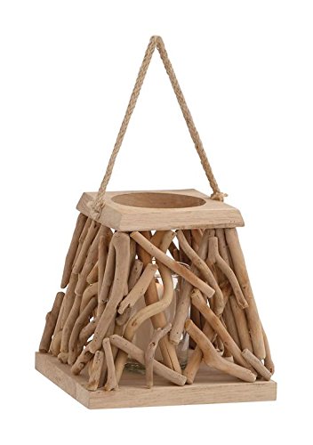 -. Title : Deco 79 76347 Driftwood Glass Lantern 8"W, 14"H -
