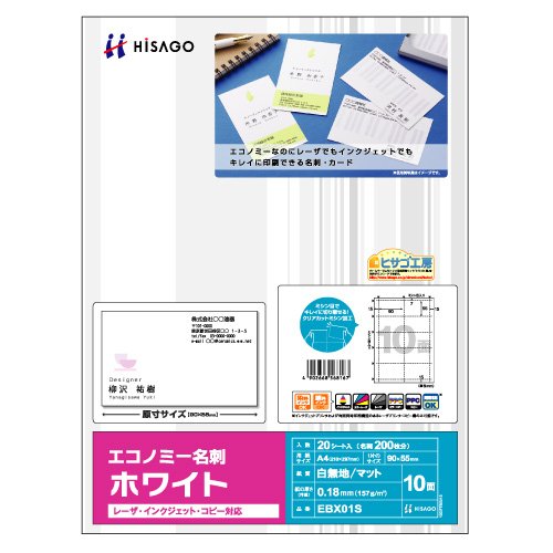 Paper thickness: 0.18 mm, basis weight 157 g / m 2.1 Pack of 20 sheets (200 business cards)