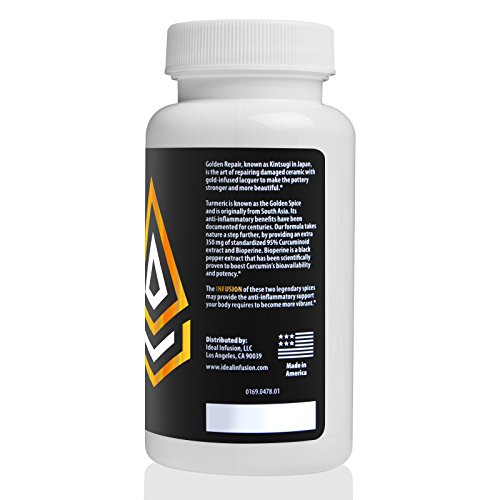 -. Feature : SUFFERING FROM ACHING JOINTS AND MUSCLES? With time tasks that you used to take for granted have now become an arduous endeavor. Our concentrated turmeric curcumin formula was designed to be potent enough for the everyday person and strong enough for the serious athlete. / BOOST COGNITIVE FUNCTIONS! The anti-inflammatory properties of Golden Repair go beyond just muscles and joints. With 350 mg of pure curcumin extract per capsule, our formula is robust enough to support healthy cognitive functions. Turmeric Curcumin has been widely studied for its ability to support healthy neurotransmitter systems and neurogenesis. Protect your mind and body with this extra strength formula! / ANTI AGING BENEFITS! Turmeric contains an array of antioxidants that have a potent anti aging effect. Not only does this promote skin health, but it supports a healthy heart! / MAX ABSORPTION! Bioperine is a black pepper extract that has been scientifically proven to increase curcumin's absorption rate by no less than 2000%. Only 1 capsule a day is necessary! / 30 DAY MONEY BACK GUARANTEE. GOLDEN REPAIR is made in an NSF, GMPc, and FDA Registered Facility. We are so confident in the quality and potency of our Golden Repair blend, that we offer a 30 day money back guarantee. So, with no risk, order Golden Repair today and get your spark back!