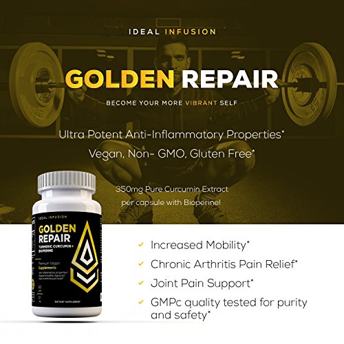 -. Title : GOLDEN REPAIR / Ultra Potent 95% Turmeric Curcumin Extract 500 mg per capsule with Bioperine, Joint & Muscle Pain Relief, Arthritis Pain Relief, Vegan, Non-GMO, 60 servings