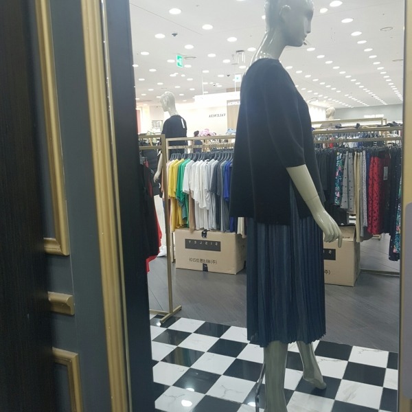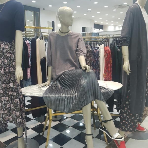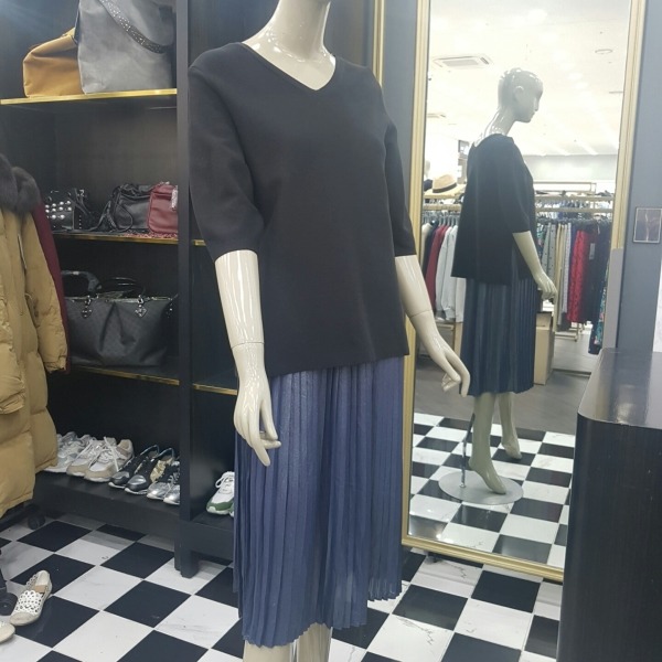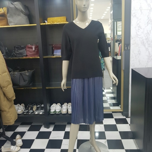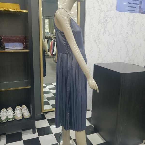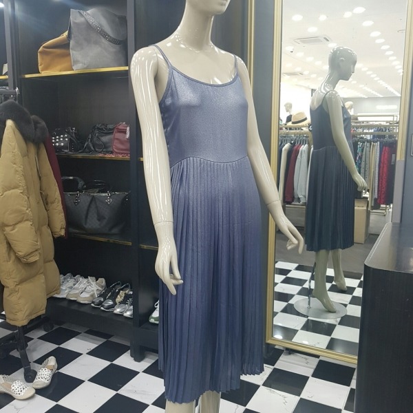 플리츠 끈 원피스에 브이넥 니트를 덧입는 스타일의 니트롱원피스 입니다