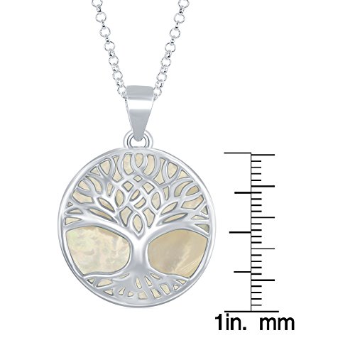 Celebrate the complexity and beauty of tradition invoked by this gorgeous 'Tree of Life' stone pendant necklace. The stunning sterling silver tree sits atop your choice of a 25mm turquoise, mother of pearl, or abalone gemstone to complement your personal style. An 18-inch cable chain is included to proudly display this elegant work of art