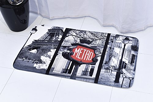 -. Title : EVIDECO P.R.Inted Microfiber Mat Bath Rug Paname Paris Gray 23.62w X 35.43