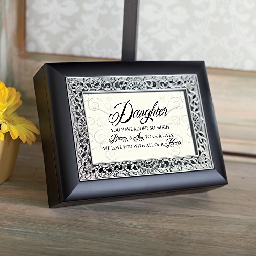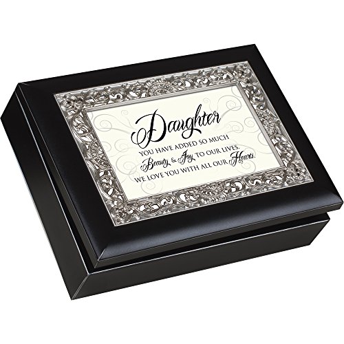 Daughter You Have Added so Much Beauty & Joy, Matte Black with Ornate Silver Inlay, Jewelry Music Box - Plays You Are My Sunshine