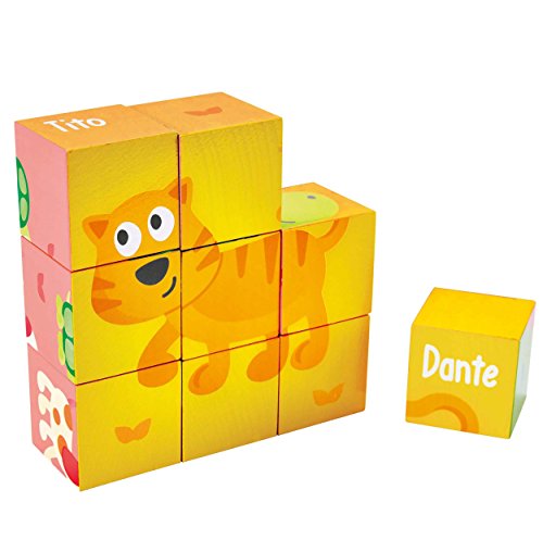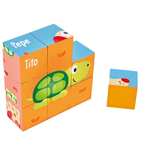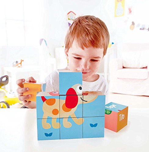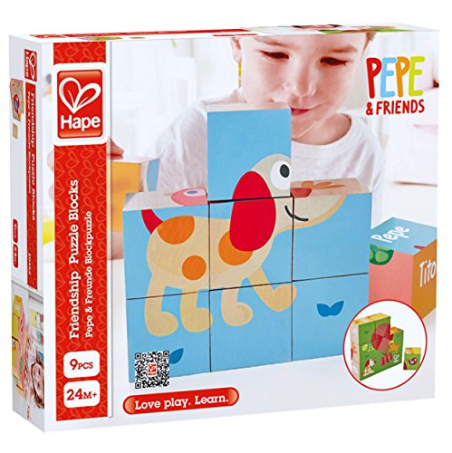 Features wooden blocks that can create six different pictures, featuring Pepe & Friends! Encourages children to explore and create while learning. Contains 9-pieces total made with a natural wood design and bright engaging graphics. Perfect for developing toddler's problem solving and logic skills. Encourages children to find creative solutions to problems. Durable child safe paint finish and solid wood construction make this a toy your child will love for years to come. Hape toys stimulate children through every stage of development and help nurture and develop their natural abilities. All Hape products sold in North America meet or exceed all applicable safety standards.Feature