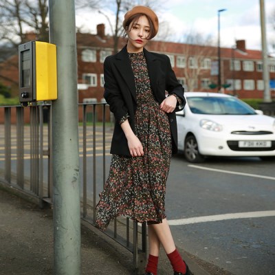 클래식한 분위기의 롱 플라워 원피스입니다. 블랙 바탕 위에 톤다운된 잔꽃 패턴이 고급스러운 느낌을 주고 차르르 흘러내리는 원단으로 제작되어 여리여리한 핏을 연출할 수 있습니다. 허리 부분은 밴드와 스트랩으로 두번 잡아주어서 여성스러운 라인이 돋보입니다. 가디건, 자켓, 맨투맨 어디에나 어울려서 활용성이 좋습니다.