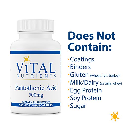 Pantothenic Acid is converted in our bodies to coenzyme A, which is involved in the metabolism of fats, carbohydrates, and proteins, and the synthesis of hormones, bile, and hemoglobin. Pantothenic Acid is utilized in nerve transmission. Pantothenic Acid also supports the immune system. Vital Nutrients mission is to manufacture superior quality nutraceuticals that exceed both industry and government standards and provide clinically effective results. They provide over 200 science-based and clinically effective products. They have a comprehensive quality assurance program to ensure that purity and potency is consistently met on every product that they manufacture. Vital Nutrients uses independent U.S. ethical laboratories to test all raw materials and finished products. Each raw material is tested, regardless of origin, for purity and potency. All finished products are tested through a real time stability protocol for expiration date validation. They are an FDA Inspected facility that exceeds FDA cGMPs, and a member of the NPA.Feature