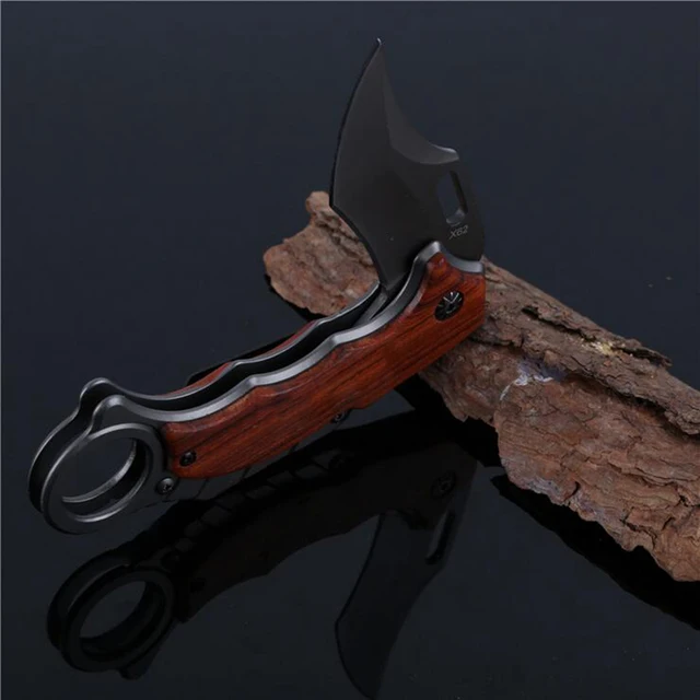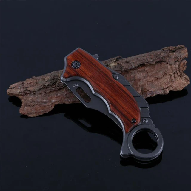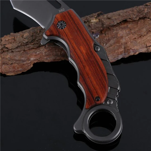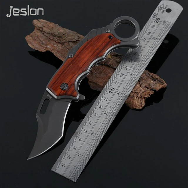 | [해외] Jeslon 휴대용 접이식 블레이드 칼 스틸 + 나무 핸들 야외 포켓 캠핑 전술 생존 사냥 EDC 도구 구조 칼 |