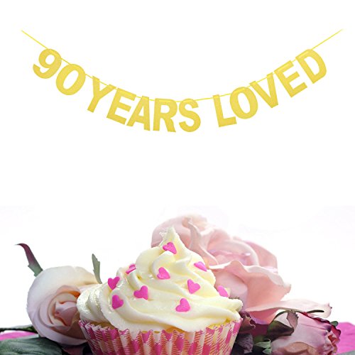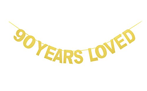 -. Title : Qibote Gold Glitter 90 Years Loved Banner for 90th Birthday, 90 Wedding Anniversary Party Decorations