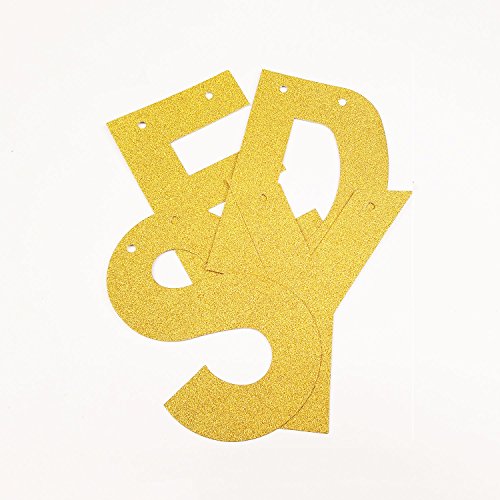 -. Feature : Material:Eco-Friendly Paper / Color:Gold Glittery / Size: Letters: approx. 5.3" x 3.5"(L x W), letters are different, letter size may be a little different. Gold rope: 10 m x 5 mm(L x W) or 5 m x 5 mm(L x W), random one / Great for 90th Birthday/90 years wedding anniversary party decoration / Ribbon and cards come separately, so letters are adjustable along gold strings according to your different needs
