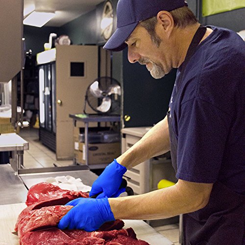 ReleaseDate : 2017-04-20 Studio : AMMEX Publisher : AMMEX Binding : Misc. Product Description In the food processing industry, protection from cross-contamination is important?for the worker, the product, the customer and, ultimately, for the business. AMMEX Glove works HD Royal Blue Nitrile Powder Free Industrial Gloves help to cover all those bases. What really sets these premium-quality disposable gloves apart, however, is their raised diamond texture. Our most aggressive, with 60 percent more surface area than standard nitrile gloves, it allows more liquids to pass through channels?so even when the gloves are wet, you have all the gripping power you need. Another bonus: It creates a reverse texture inside to help air circulate, which keeps your hands drier than other gloves. This innovative texture has raised standards across the disposable glove industry, but there’s a lot more to AMMEX Glove works HD Royal Blue Nitrile Powder Free Industrial Gloves than their grip. They are made from component materials that comply with FDA regulations for food contact, designed and manufactured to deliver the best protection. The high-visibility royal blue color really stands out, an important feature in food processing. If a tiny bit of glove becomes detached, you want to find it before it ends up in the food?of particular concern when filleting fish. These 6-mil gloves are durable and resistant to punctures, tears, rips, and abrasions?three times more than latex or vinyl. They stand up to the rigors of a food production line while providing excellent barrier protection against grease, cleaning solutions, and a long list of specialty chemicals, yet they maintain a high degree of dexterity and tactile sensitivity. Work longer with the confidence that you are safer. AMMEX Glove works HD Royal Blue Nitrile Powder Free Industrial Gloves are also a perfect fit in uses from plumbing to paint shop, automotive to manufacturing, janitorial to industrial, as well as a cost-effective alternative to canning gloves for many applications. 0