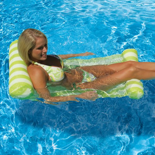 Relax in cooling comfort with the water surrounding while lounging on the Water Hammock. Designed to position you in a semi-submerged position, you'll stay refreshed and cool while floating your cares away. Constructed in all-weather fabric, the Water Hammock is built for season-after-season enjoyment. Just roll it up for easy storage or tote around when needed. Available in Blue, Pink, and Green.