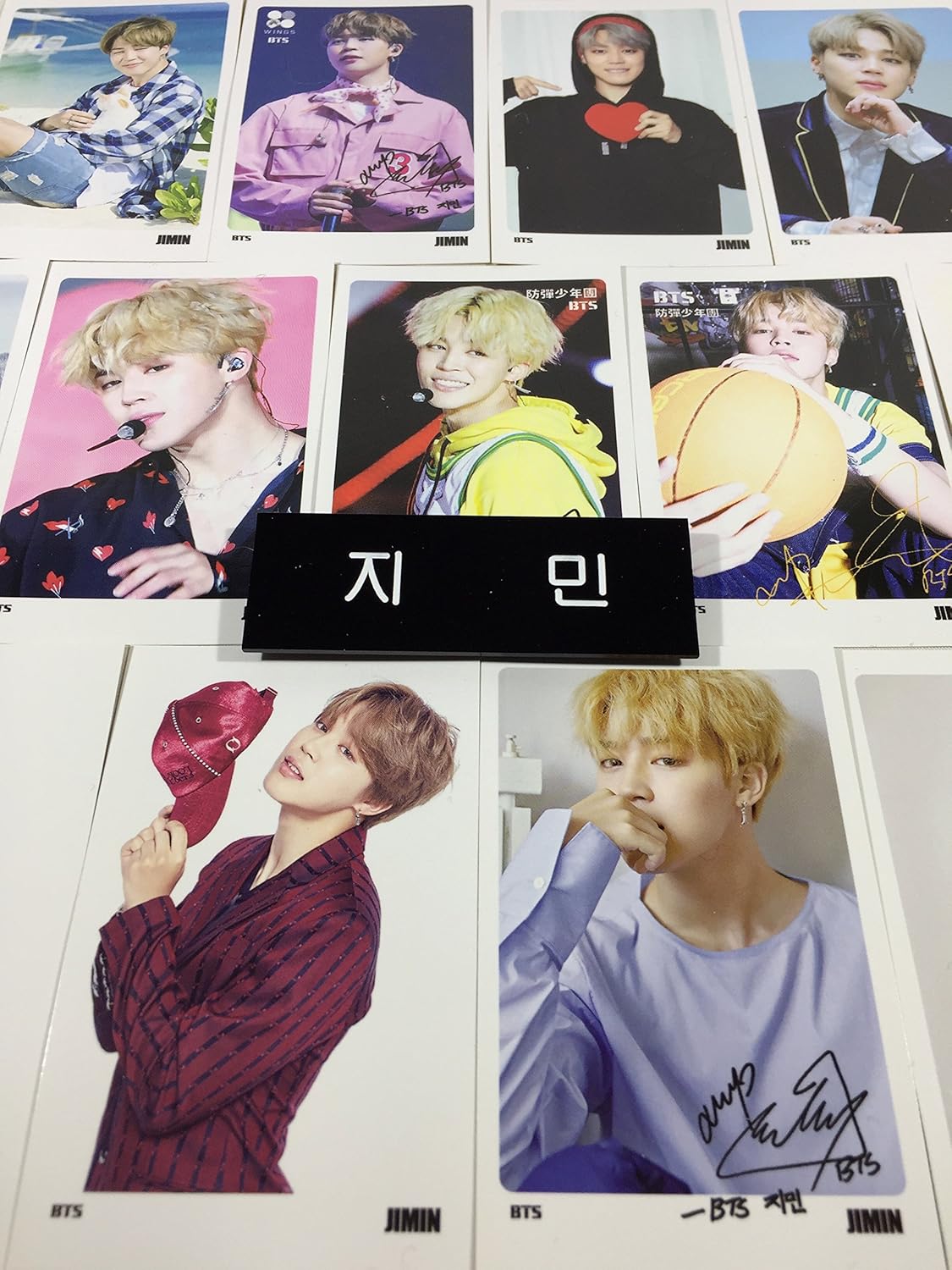 - 【商品特長】ミニポストカードは、クレジットカードサイズのフォトカード。カード裏面にメッセージを書き込めます! / ネームプレートは「JIMIN(ジミン)」をハングル(韓国語)表記にした名札。バッジとしてもお使い頂けます!
