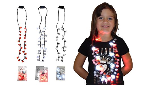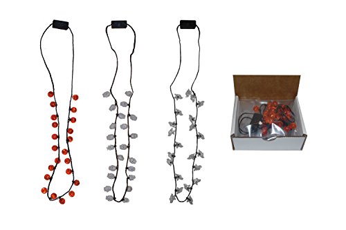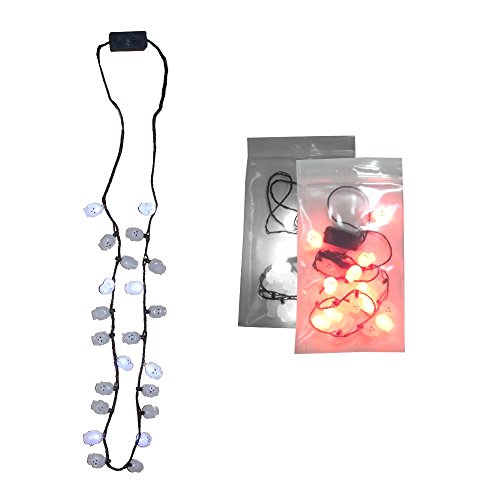 One skull pumpkin necklace is included in each 3 pack. Some packs include a skull necklace that illuminates white and others include a skull necklace that illuminates red.
