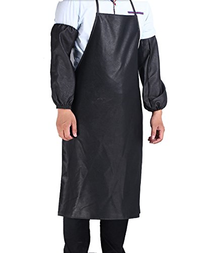 Bestartstore 24.5 x 37.5 " Men's Apron Black Waterproof Stain Resistant Durable Vinyl Bib Apron for Kitchen Dishwashing Lab Butcher Fishing
