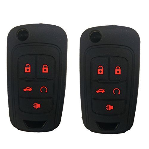 2Pcs Coolbestda Silicone Flip Key Fob Cover Case Remote Skin Keyless Jacket Holder Protector for Chevrolet Malibu Cruze Camaro Volt Equinox Spark Sonic 5 Buttons Key Black