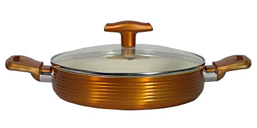 -. Title : Maestro Cookware M-74975 Pro Series Heavy Gauge Forged Deep Fryer with Tempered Glass Lid, 12", Metallic Gold/White