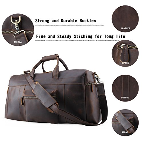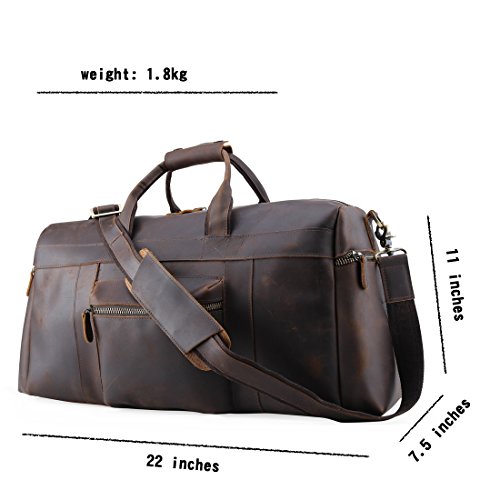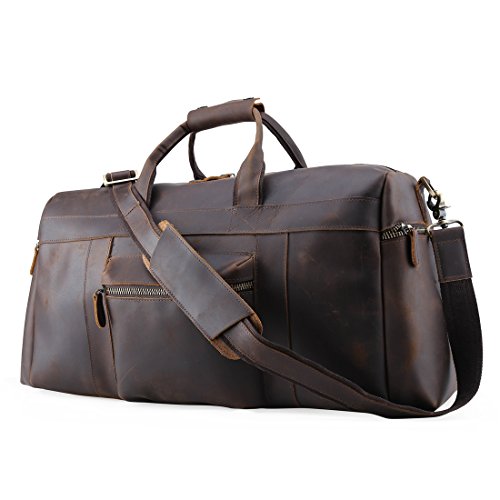 -. Brand : ECOFISH -. Color : Brown -. Department : unisex-adult (lage only) -. EAN : 0654565884096 -. Feature : Made of Traditional manual craft Top Grade Leather; Strong, light-weight genuine leather, tanned without using chemicals / Padded shoulder strap can be easily adjusted or removed; Excellent exquisite workmanship durable enough to last long / One spacious compartment with a full-length zipper for easy access / It's a great gift idea for birthday, anniversary or business / There are five metal studs protect the bottom, so you can put it on the ground without worry.Greatly extend the service life of the bag -. ProductGroup : Apparel -. ProductTypeName : LAGE -. Size : One_Size -. Title : Mens Retro Real Travel Lage Duffle Gym Bags Gym Sports Weekend Tote Bag -. UPC : 654565884096