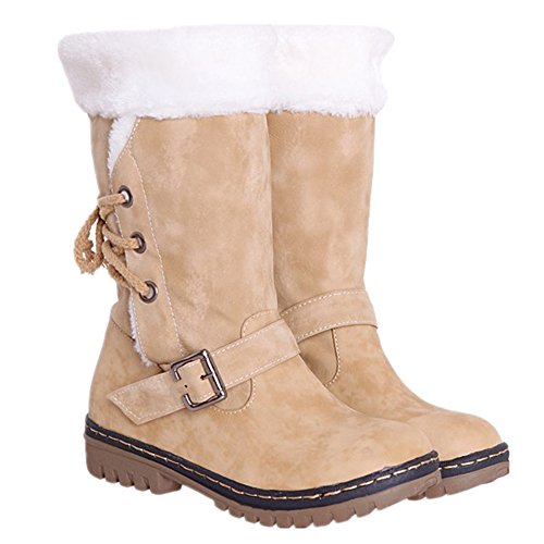 -. Feature : ★ 100% Brand New and High Quality , You Really Need it in Winter / ★ Fashionable, Comfortable, The outer part is sort of Man made leather upper. Fully fur lined interior. Quality manmade waterproof material upper to keep your feet dry and warm and comfortable. / ★ Rubber sole,Thick durable soles with deep tread. The outsole is light, flexible and durable with a deep tread ideal for cold winter days.Adjustable laces help all calves get in and out easily / ★ Grip outsole keeps you from slippery with water resistant construction; Man made leather upper with faux fur cuffs which fit for both regular and bigger calves. for a Cool style to pair with your jeans while hanging out or running errands. Thick fur lined throughout the boot which is also featured along the top. / ★ This boot will provide ultimate comfort and warmth throughout the autumn and winter seasons. These are going to be awesome for winter. These boots have a big reputation to compare to others.