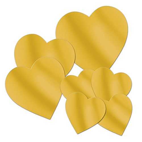 Beistle 54698-GD Packaged Gold Foil Heart Cutouts, Assorted Sizes, 7 Cutouts In Package