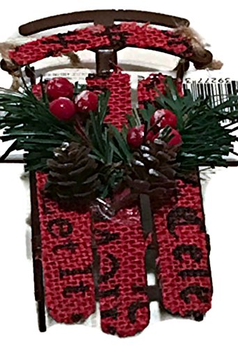 2 Burlap Christmas Sled Ornaments w/ Free Hooks