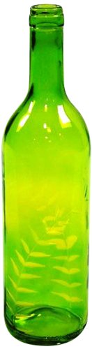 Galt International Green Glass Tall Bottle with Fern Leaf Etching