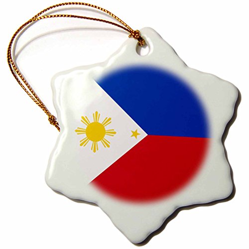 3dRose orn_159807_1 Flag of The Philippines Filipino Blue Red White with Golden Yellow Sun and Stars-Snowflake Ornament, Porcelain, 3-Inch