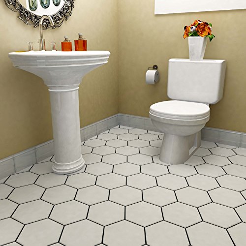 SomerTile FCD10WTX Abrique Hex Porcelain Floor and Wall Tile, 8.625" x 9.875", White