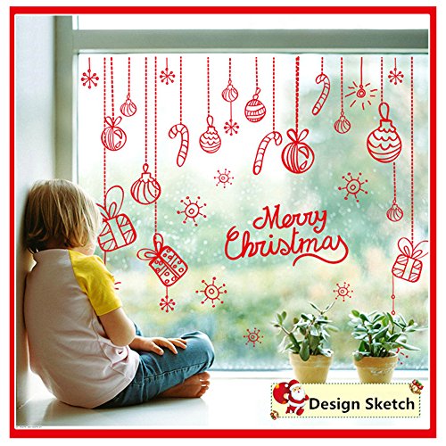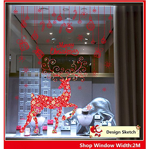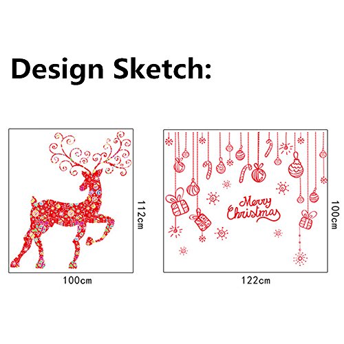 Petit Bella Red Reindeer Snowflake Christmas Wall Sticker Home Decor Decal for Glasses Windows Door Show Window