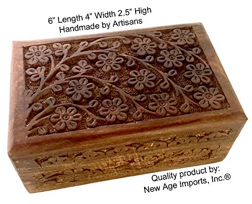 GIFT IDEAS~ Floral Carved Handmade Wooden Box 4 inches by 6 inches~Ideal for storing Jewelry, Coins, Tartot cards, Small Treasures, URN Box & etc by New Age Imports, Inc. (Floral Carved 4"x6")