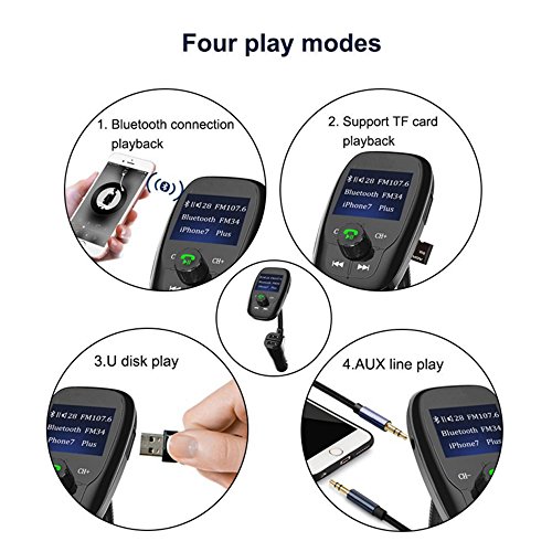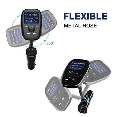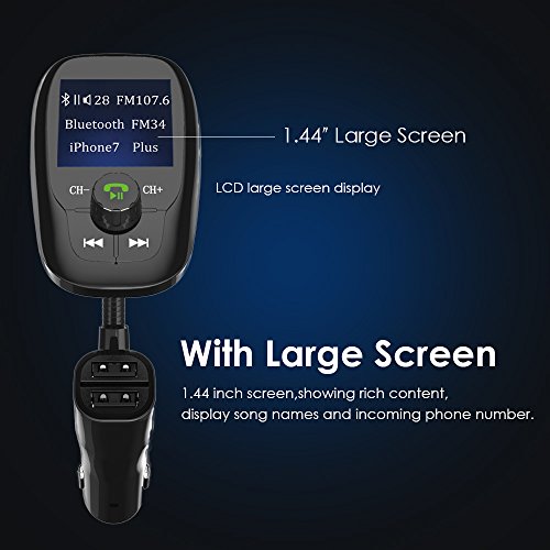 Bluetooth FM Transmitter Wireless In-Car FM Transmitter, Wireless Radio Stereo Adapter Car Kit with TF Card Slot, AUX Input and 3 USB Ports