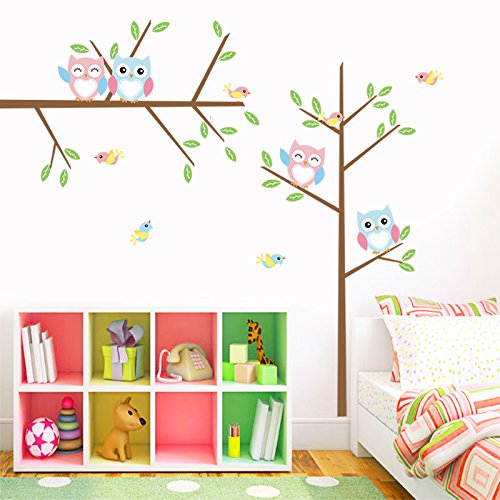 -. Title : ElecMotive Wall Stickers of Tree Owls Birds Wall Decals for Kids Rooms Nursery Baby Boys & Girls Bedroom