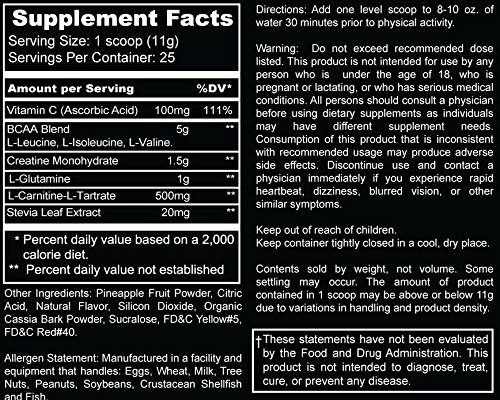 5g BCAAs (Leucine, Isoleucine, Valine) - BCAAs are the "Building Blocks" of the body. They make up 35% of your muscle mass and must be present for molecular growth and development to take place. Besides building cells and repairing tissue, they form antibodies, are part of the enzyme & hormonal system, build RNA and DNA, and they carry oxygen throughout the body.*