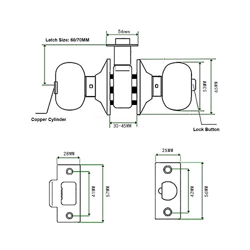 -. Brand : QRITY -. Color : Copper/Stainless-Steel -. EAN : 0889743372380 -. Feature : Entrance (Key Locking) Door Knob in Satin Stainless Steel. / Easy to install, the adjustable latch can be set to 60mm or 70mm backset. To fit doors 35mm to 50mm thick. / Lock both the inside and outside knobs preventing unwanted access to the room. It also includes a set of three keys that allow locking from the outside. / Suitable for use on bedroom doors or any other internal doors where P.R.Ivacy is required. / Please note that the door hole must be less than 60mm. -. Label : QRITY -. Manufacturer : QRITY -. MPN : DL0-U-01 -. PartNumber : DL0-U-01 -. ProductGroup : Home Improvement -. ProductTypeName : HARDWARE -. Publisher : QRITY -. Studio : QRITY -. Title : Stainless Steel Entracne Passage Door Handle Lock Knobs Lockset - Key Locking - Copper Lock Core - Latch Size 60/70mm -. UPC : 889743372380