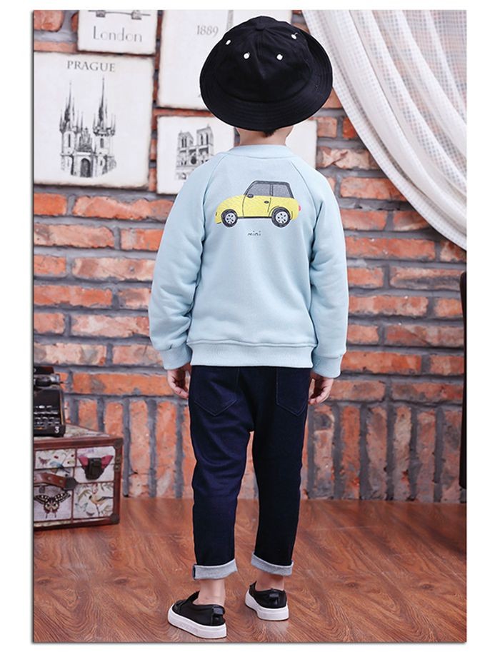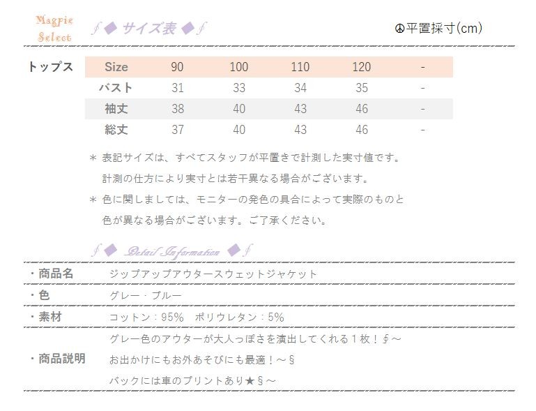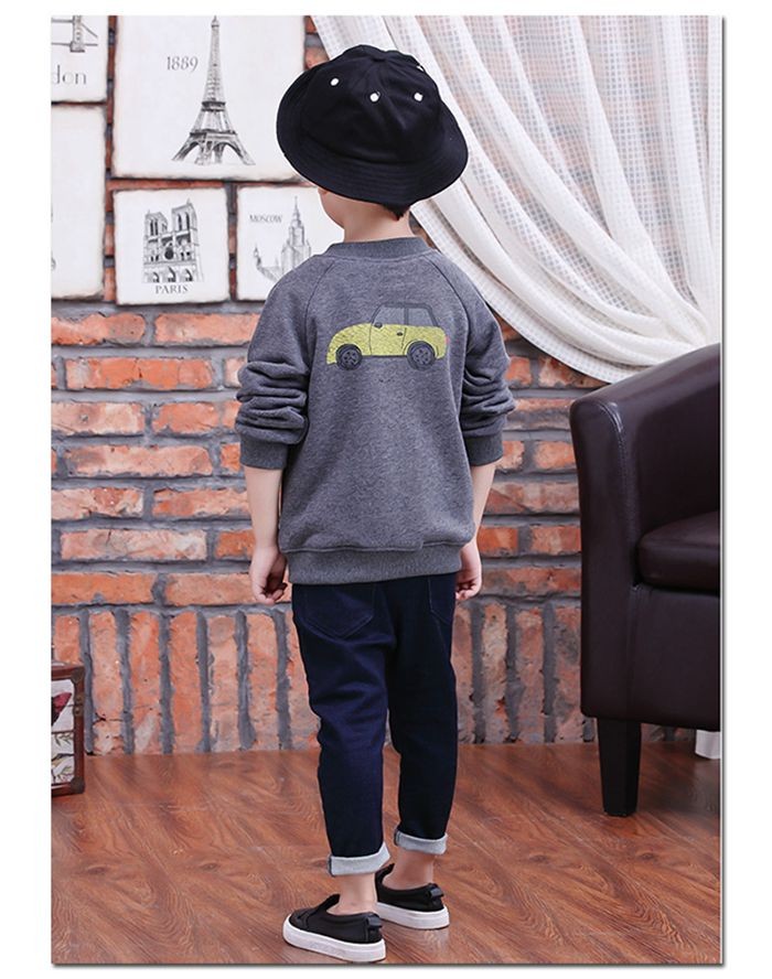 【製品仕様】■商品説明グレー色のアウターが大人っぽさを演出してくれる。お出かけにもお外あそびにも最適。バックには車のプリントある。 ■素材/材質コットン95% ポリウレタン5%■色グレー/ブルー