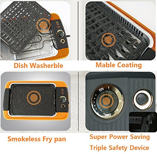 2017 Anbang Grill is produced by D&W with 35 years of experience in traditional electronics. The new Anbang grill is smoke-smell free and prevents grease from evaporating in air. The grill is designed with 'Easy fit' components. It has 5 parts such as the grill pan, heating plate, oil guide, oil collector and the outer shell which can be disassembled and assembled very easily. The new grill pan features non-stick coating Marble and prevent sticking on the surface. It is also ECO friendly and saves power by 50% less than other grills in the market. Its Triple safety switch shuts down the grill automatically when accidently fallen. Whether it's fish, meat or vegetable you're grilling up, enjoy smoke-smell free with Anbang Indoor grill, Non stick, Smokeless, Smell Free, electric, BBQ Grill (110Volt) DNW-101F 19"x4.7"x11.4"Feature